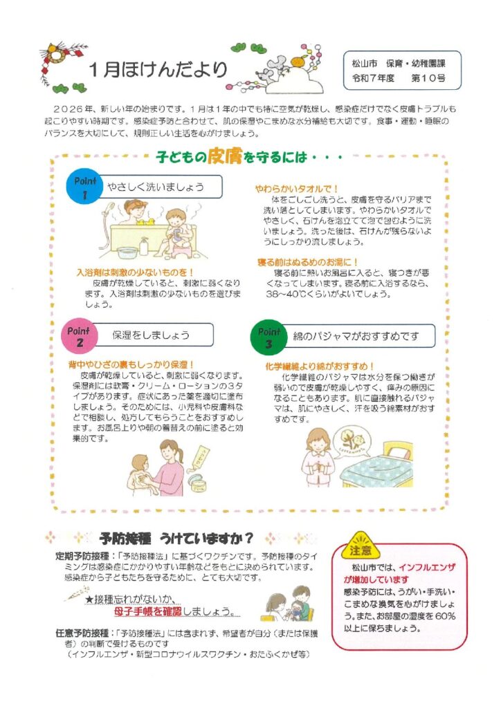ほけんだより 2025 12/25 中の川園 保護者へのお知らせ 余戸園 保護者へのお知らせ 2025年12月25日 中の川園 保護者へのお知らせ 余戸園 保護者へのお知らせ 中の川🍚1月献立 中の川🎍🐎1月園だより 関連記事 余戸園🎍1月の園だより 2026年1月5日 中の川🎍🐎1月園だより 2026年1月5日 中の川🍚1月献立 2025年12月25日 余戸園🎍1月給食献立表&給食だより 2025年12月22日 お堀の図書館 2025年12月4日 余戸園🎄園だより 2025年11月25日 余戸園🎄12月給食献立表&きゅうしょくだより 2025年11月25日 中の川🍚12月献立表 2025年11月25日