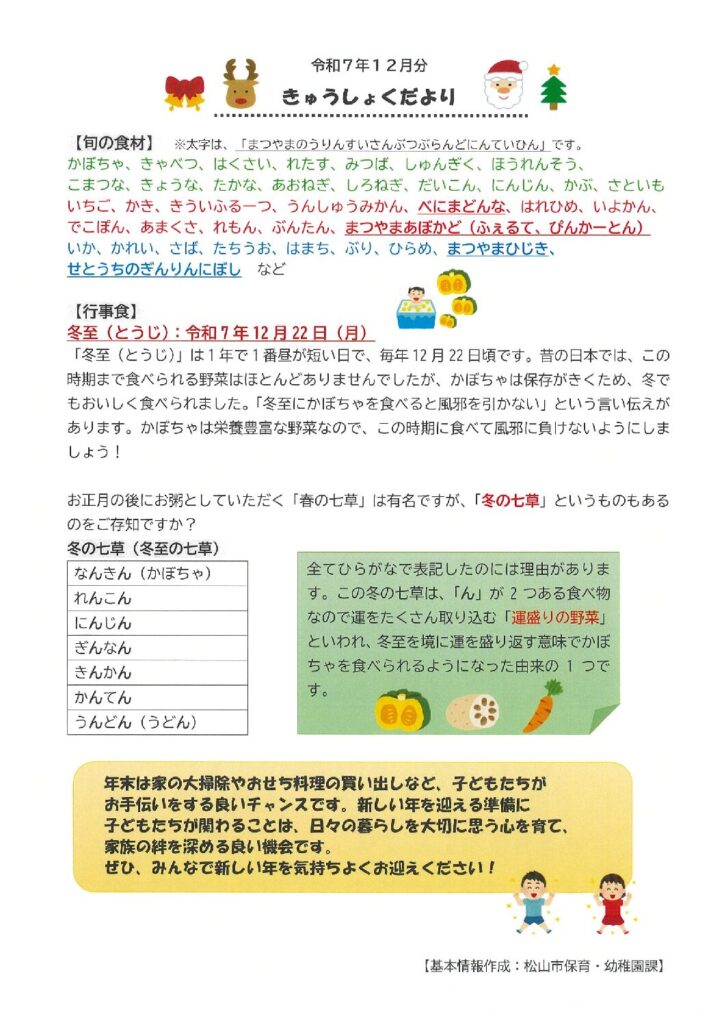 中の川🍚12月献立表 2025 11/25 中の川園 献立 2025年11月25日 きゅうしょくだより 中の川園 献立 中の川🎄12月園だより 余戸園🎄12月給食献立表&きゅうしょくだより 関連記事 中の川🎄12月園だより 2025年11月25日 中の川🍚11月献立表 2025年10月27日 中の川🍂11月園だより 2025年10月27日 中の川🍚10月献立表 2025年9月26日 中の川🎃10月園だより 2025年9月26日 中の川🍚9月献立表 2025年8月25日 中の川🍇9月園だより 2025年8月25日 中の川🍚8月献立表 2025年7月25日