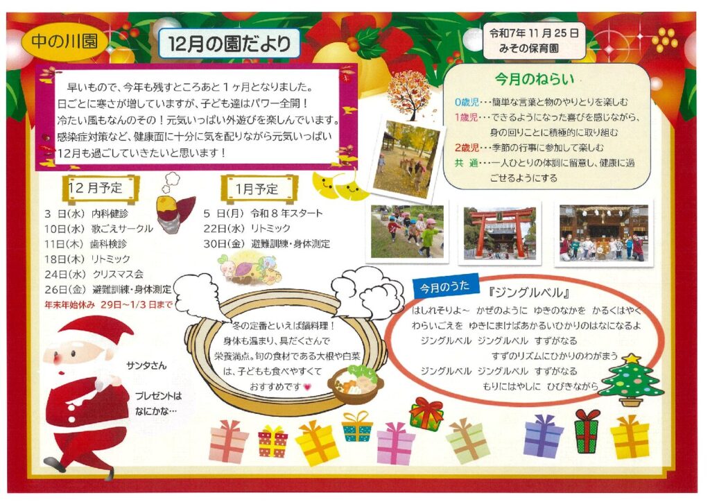 中の川🎄12月園だより 2025 11/25 中の川園 園だより 2025年11月25日 ほけんだより 中の川園 園だより 🎄12月活動予定🎅 中の川🍚12月献立表 関連記事 中の川🍚12月献立表 2025年11月25日 中の川🍚11月献立表 2025年10月27日 中の川🍂11月園だより 2025年10月27日 中の川🍚10月献立表 2025年9月26日 中の川🎃10月園だより 2025年9月26日 中の川🍚9月献立表 2025年8月25日 中の川🍇9月園だより 2025年8月25日 中の川🍚8月献立表 2025年7月25日