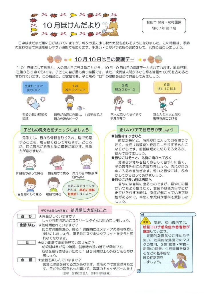 余戸園🎃園だより 2025 9/26 余戸園 保護者へのお知らせ 園だより 行事予定 2025年9月26日 ほけんだより 余戸園 保護者へのお知らせ 園だより 行事予定 余戸園🎃給食献立表 中の川🎃10月園だより 関連記事 余戸園🎃給食献立表 2025年9月25日 余戸園🍇9月の園だより&ほけんだより 2025年8月28日 余戸園🍇9月給食献立表&給食だより 2025年8月25日 8月余戸園🍉園だより&ほけんだより 2025年7月28日 8月余戸園🍉給食献立表&きゅうしょくだより 2025年7月28日 余戸園🎋7月給食献立表 2025年6月30日 ほけんだより 2025年6月27日 余戸園🎋7月園だより 2025年6月26日