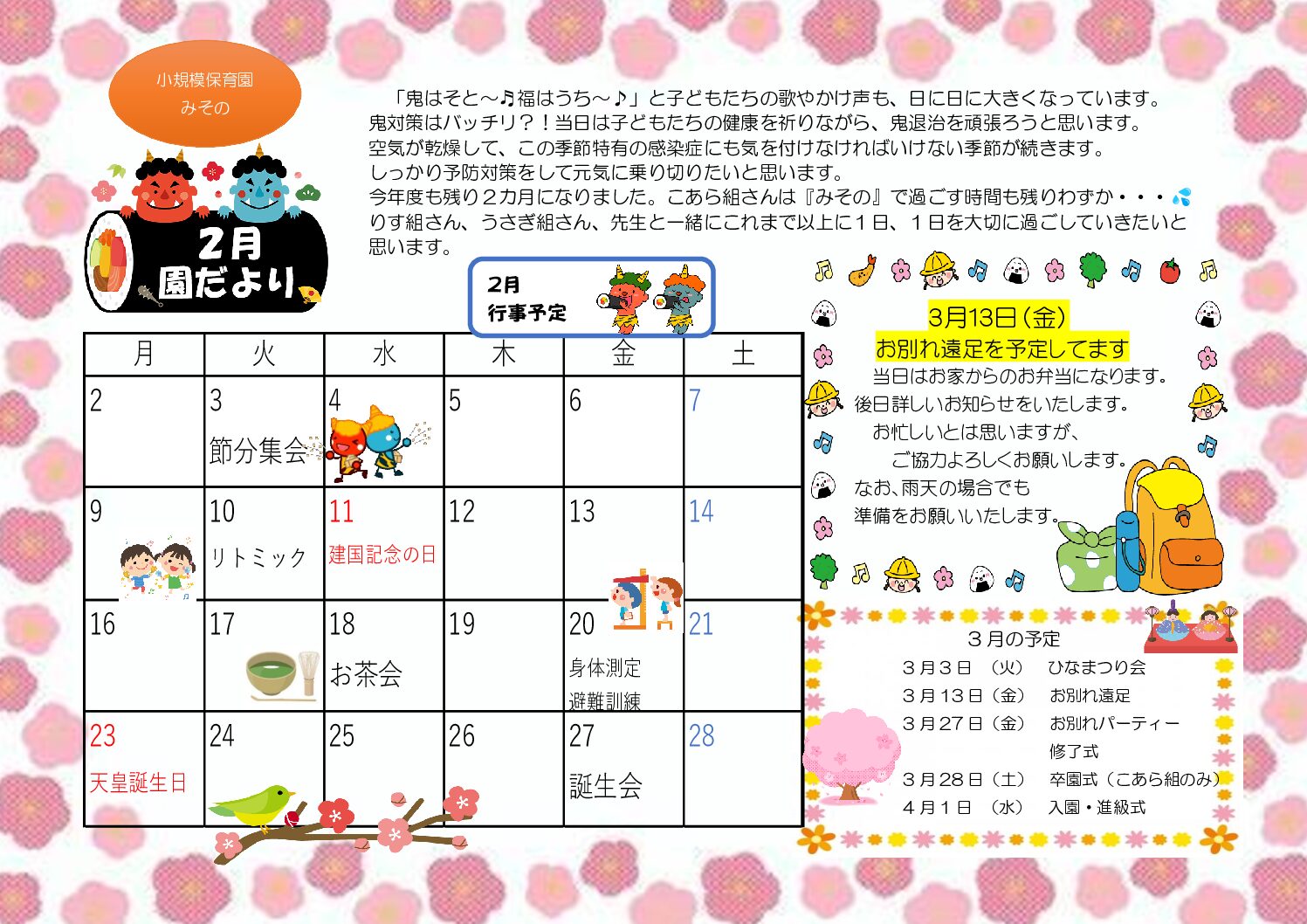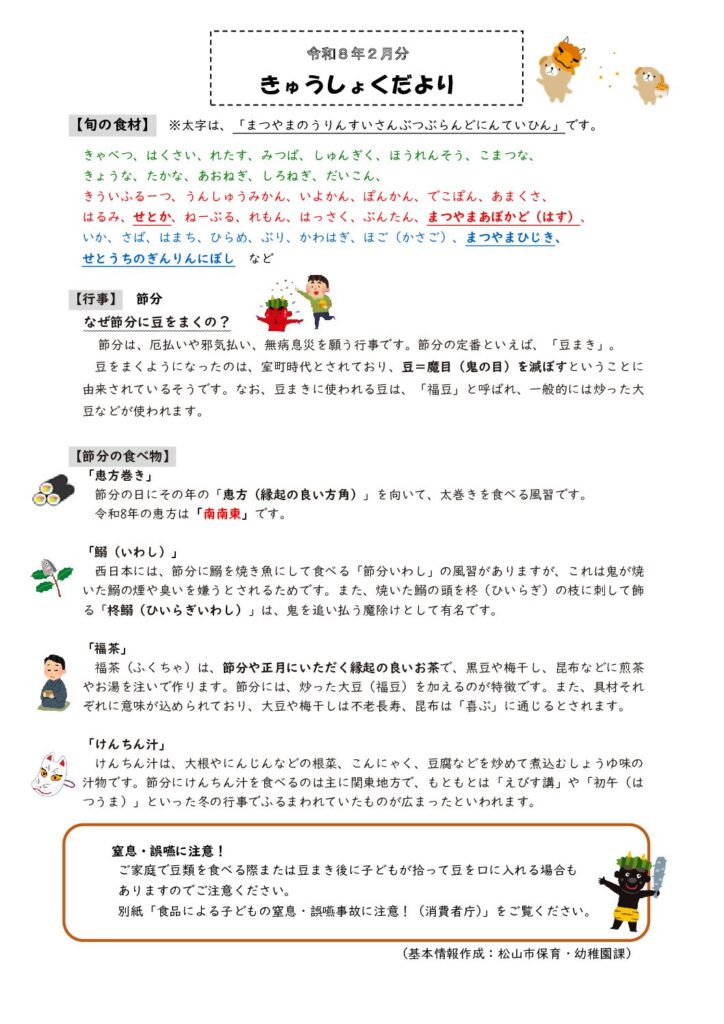 余戸園💝2月給食献立表 2026 1/26 余戸園 献立表 2026年1月26日 きゅうしょくだより 余戸園 献立表 👹2月活動予定⛄ 余戸園💝2月のえんだより 関連記事 余戸園💝2月のえんだより 2026年1月26日 余戸園🎍1月の園だより 2026年1月5日 ほけんだより 2025年12月25日 余戸園🎍1月給食献立表&給食だより 2025年12月22日 余戸園🎄園だより 2025年11月25日 余戸園🎄12月給食献立表&きゅうしょくだより 2025年11月25日 余戸園🍂11月園だより&ほけんだより 2025年10月27日 余戸園🍂11月給食献立表&給食だより 2025年10月27日