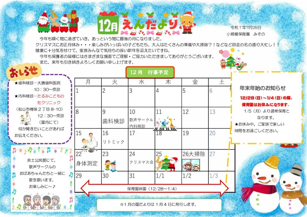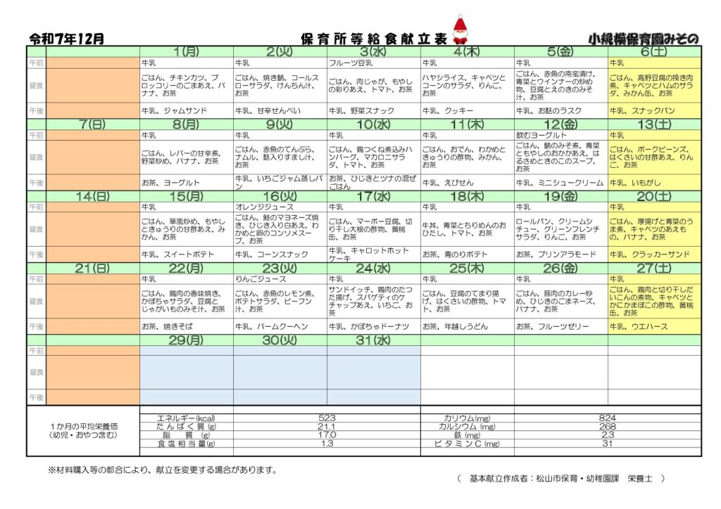 余戸園🎄12月給食献立表&きゅうしょくだより