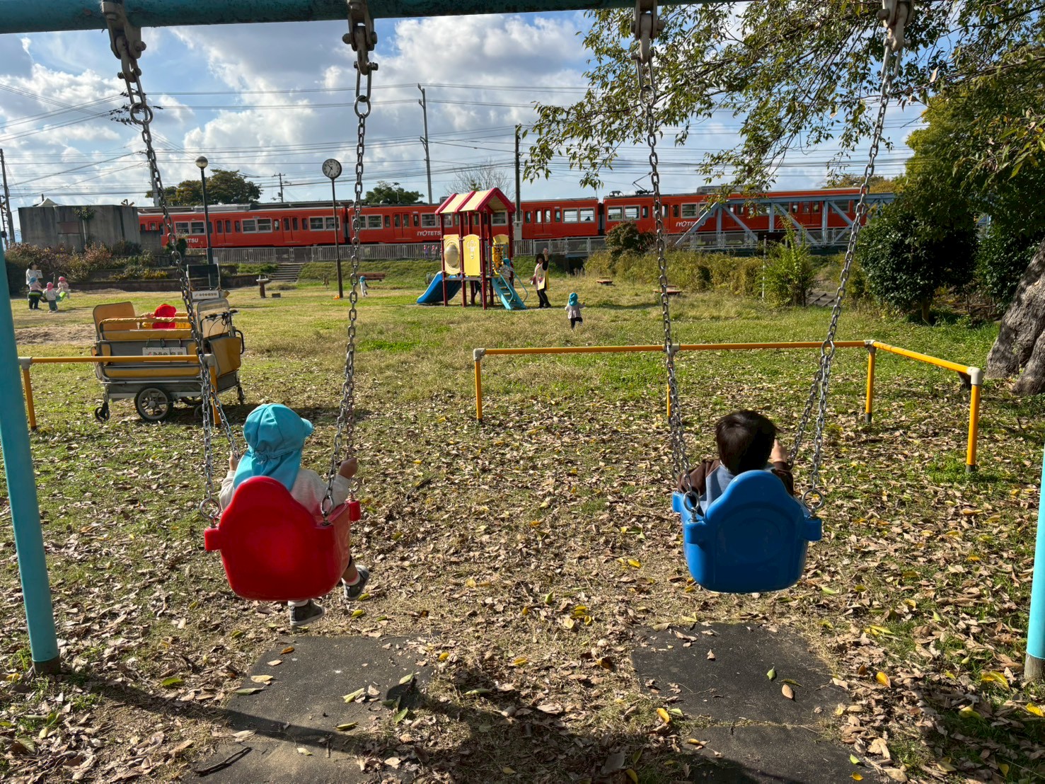 園の向かいにある石手川公園では、四季を存分に感じながら、元気いっぱい外遊びや散歩ができます。