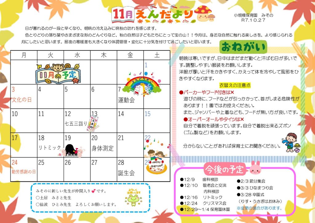 余戸園🍂11月園だより&ほけんだより